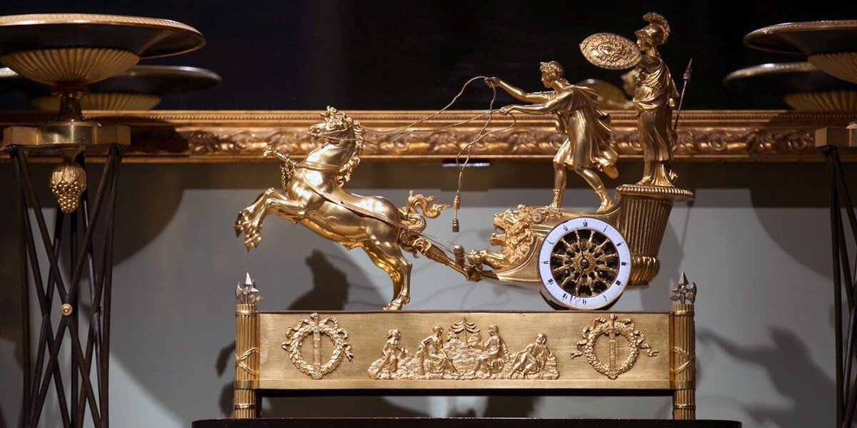 Классицизм — стиль, вдохновленный искусством античности, в просвещенной Европе пришел на смену барокко еще в XVII веке и главенствовал до XIX столетия. Это было время активных раскопок древних городов, которые открыли многие ранее не известные детали быта античных времен. Вновь вошли в моду архитектурный ордер и симметрия, в живописи стали востребованы мифологические сюжеты, в декоративно-прикладном искусстве утвердился антикизированный орнамент.Поздняя форма классицизма, ампир (от французского empire — «империя») наиболее ярко проявился в двух странах, познавших вкус больших военных побед, — наполеоновской Франции и России Александра I. Этот стиль пропитан военной героикой и триумфом. Даже ставшее его характерной чертой обращение к древнеегипетским мотивам обусловлено походом Бонапарта, после которого в Европе оказалось множество древностей времен фараонов.На выставке в «Царицыне» воссоздано убранство пяти интерьеров Петергофского дворца, передающих атмосферу придворного стиля первой половины XIX века: парадные зал и спальня, кабинет, малая и зеленая гостиные. Представленные в них мебель, художественный металл и малая пластика, фарфор и стекло, живопись и графика в полной мере отражают основные тенденции развития русского интерьера эпохи Александра I.