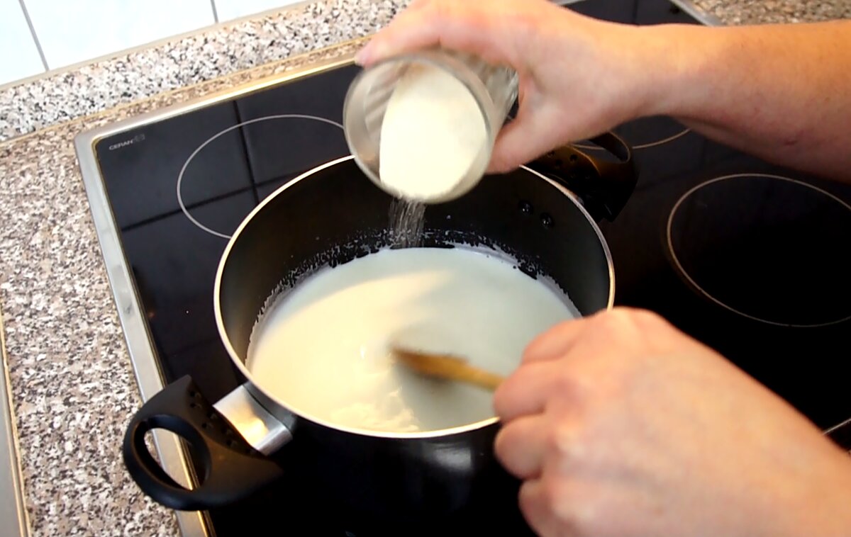 1 Вскипятить молоко, всыпать манную крупу и приготовить манную кашу.