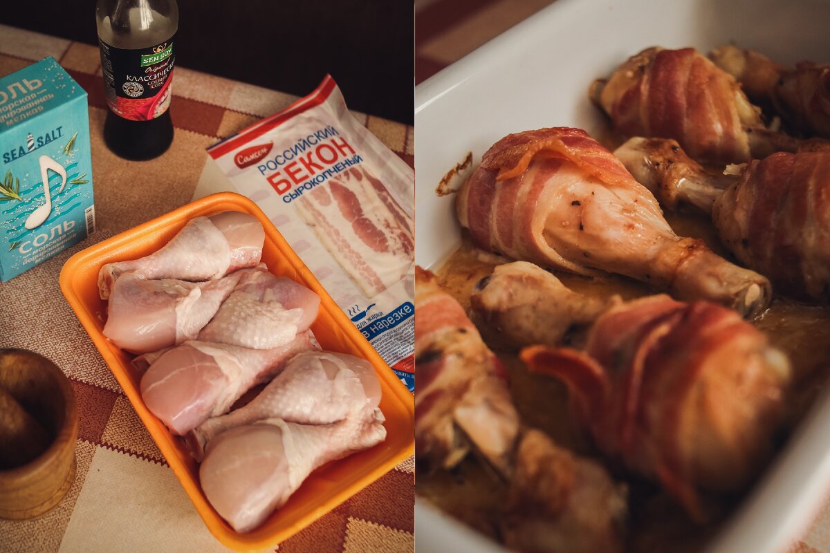 - Поставить в разогретую до 180 градусов духовку на 45-55 минут (если бекон начнет подсыхать или подгорать, можно закрыть фольгой).