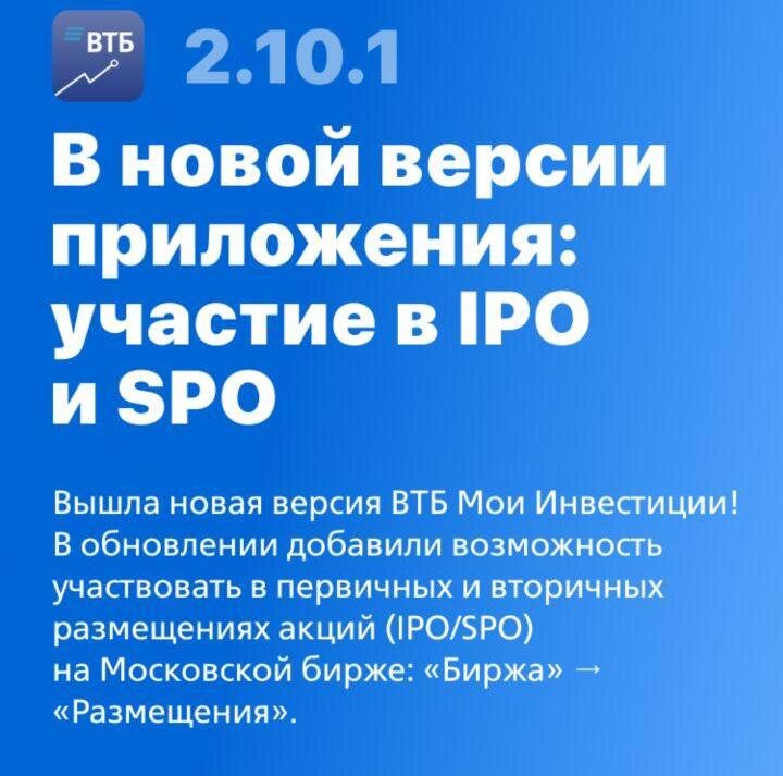 Друзья! Сегодня мне пришло уведомление от приложения ВТБ Мои Инвестиции о том, что у них появилась возможность участвовать в IPO. Я знаю, что участие в IPO российских компаний, предоставляют Тинькоф, Финам и ряд других компаний. Неужели ВТБ своим клиентам тоже предоставила такую возможность? Посмотрим. И сразу с порога предлагают участвовать в IPO компании "Совкомфлот". Сами ВТБ расписали компанию "Совкомфлот" такими красками, что невольно хочется отдать им все свои деньги, лишь бы поучаствовать в первичном размещении акций этой компании. Однако, как уже известно, бесплатно ничего не бывает. Если Вы не разбираетесь в этом, ни разу не участвовали в IPO, стоит к этому отнестись очень осторожно. Лучше отказаться, и просто понаблюдать за процессом, но остаться при своих деньгах, чем потерять. В любом случае, запомните одно: Всегда будут возможности, чтобы заработать. Что касается меня, ради эксперимента, я подам заявку. Старт приема заявок - 25 сентября. Подписывайтесь на мой телеграмм ка