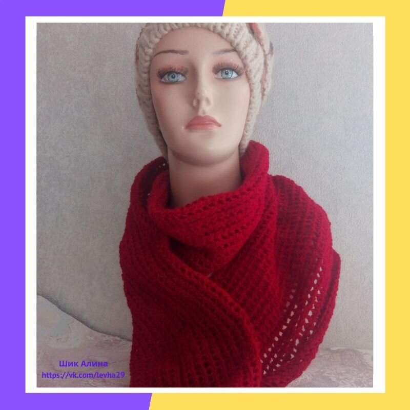 Как ни крути, а становится все холоднее, и все чаще хочется укутаться в теплое. И как раз я закончила вязать ажурный темно-красный шарф из двух ниток на спицах троечке от "Гаммы".
