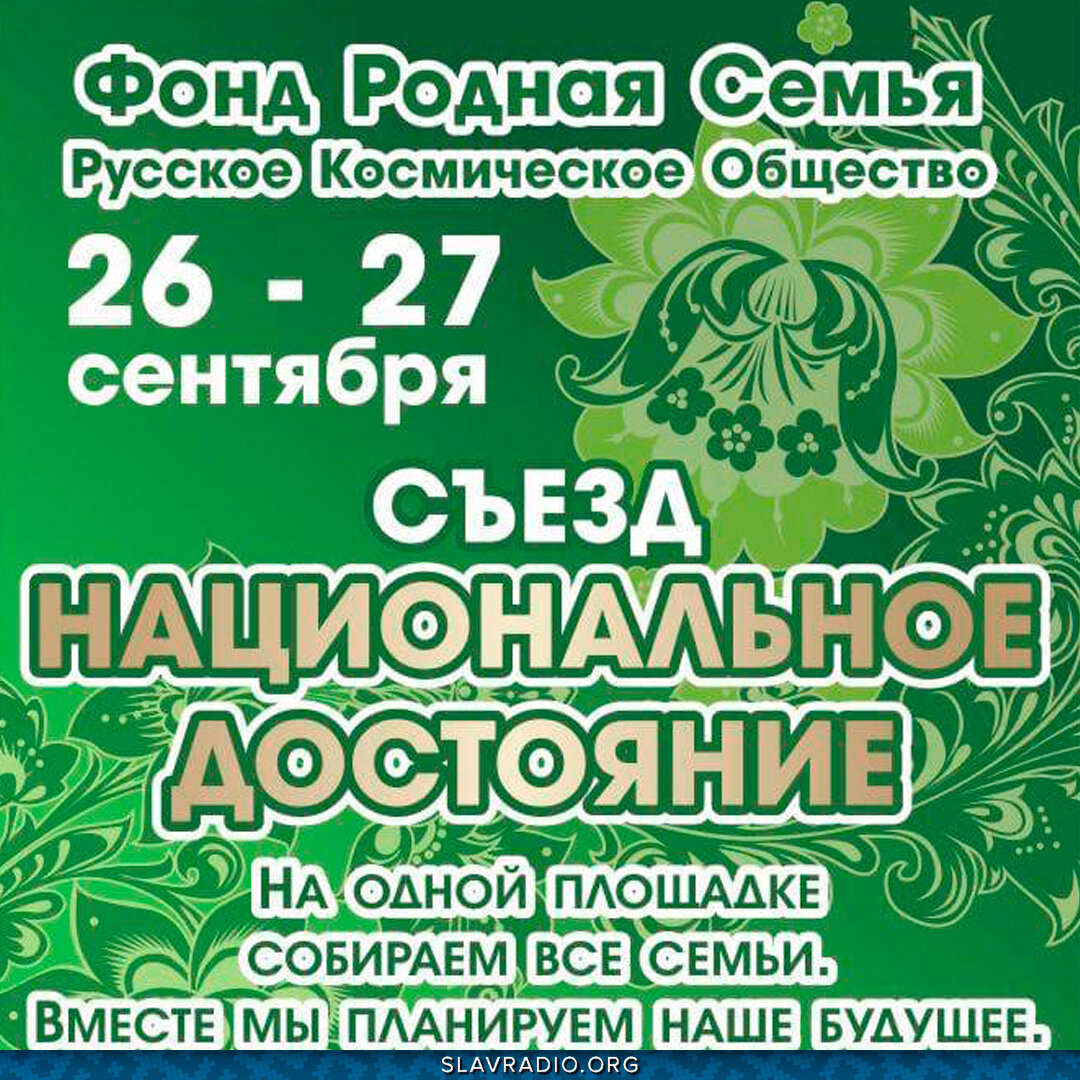 Фонд поддержки и развития семей «Родная семья» проводит Съезд «Национальное достояние», который организуется для обмена положительным опытом и на личном примере полных многодетных семей, что поможет молодым семьям, и молодым людям, готовящимся создать семейный союз, принять верное решение о создании крепкой полной многодетной семьи. Родители получат возможность обрести знания по гармонизации семейных отношений, по формированию семейных традиций, внутренней среды и культуры. Дети разного возраста примут участие в интересной развивающей и развлекательной программе. Специалисты взглянут на демографическую ситуацию через профессиональный опыт приглашённых гостей. Съезд состоится 26 сентября в 11.00 и 27 сентября в 12.20 в Российском Государственном Социальном университете по адресу: г. Москва, ул. Стромынка, 18 к.4. Чтобы стать участником Съезда, каждому желающему нужно обязательно пройти регистрацию на сайте https://www.semya.org/ ПОДПИСАТЬСЯ НА НОВОСТИ РАДИО: http://slavrad