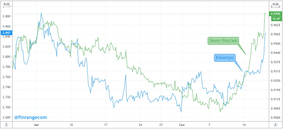 Наверное, многие заметили, что последнюю неделю акции данных генерирующих компаний начали синхронно расти, за последние 5-7 дней, котировки Энел Россия и Юнипро выросли более чем на 5%.