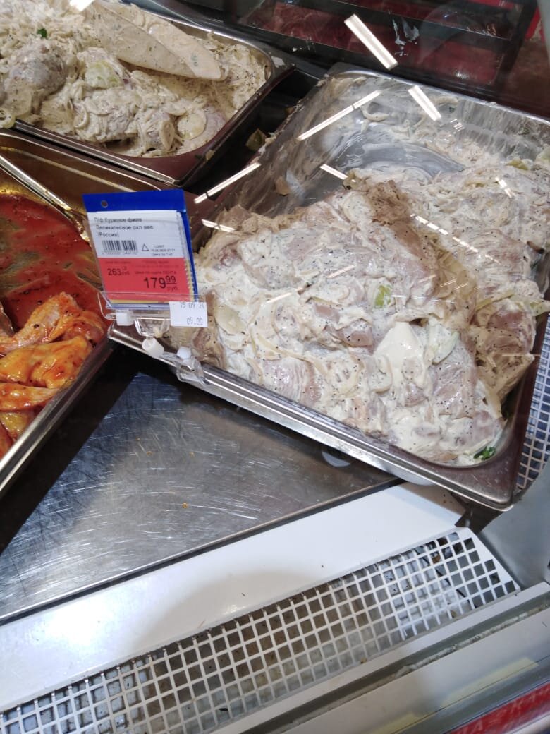 Вопрос стоял между шашлыком куриным и филе, но решили взять филе, оно было по скидке, всего 179,90 за кг. Вышло у нас на 230 рублей.