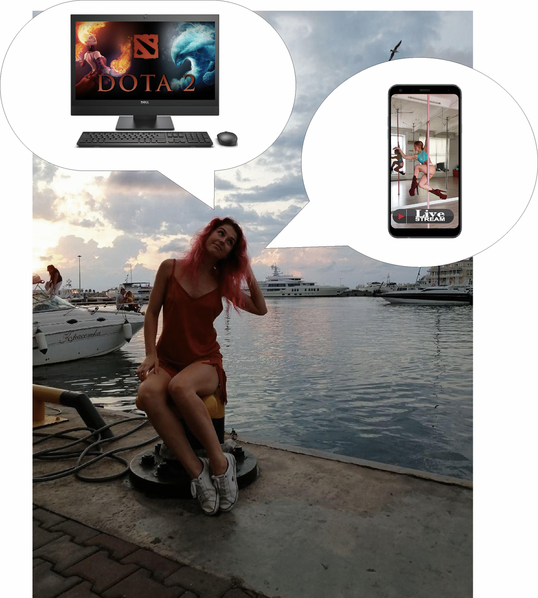 Live Stream. Я уже писала об этом раньше в статье "Телефон для стрима", все мое оборудование для стриминга - это телефон, лампа и стул. Телефон за 11 000 рублей, лампа 1500 рублей, а стул он и в Африке стул. Интернет, достаточно и мобильного.