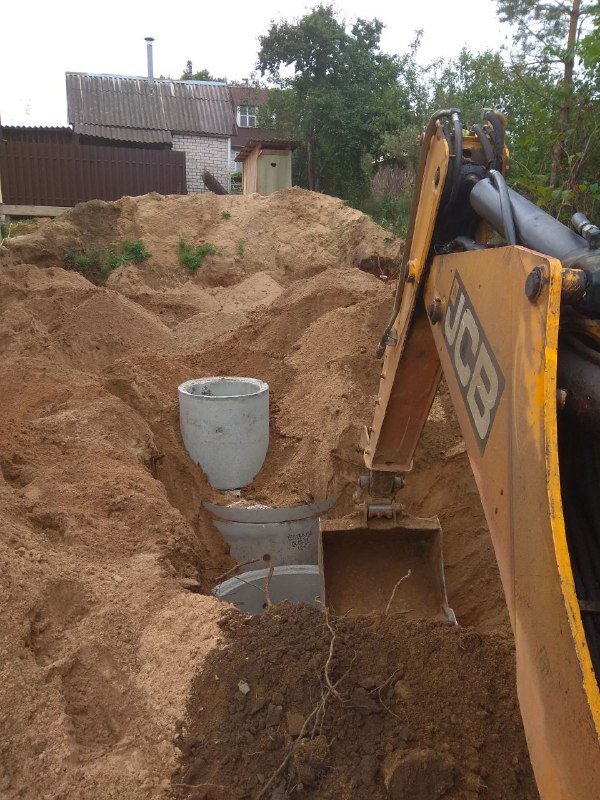 На очередном обьекте стояла задача смонтировать наружную канализацию из жби колец для для загородного дома под ключ. Плюс рядом смонтировать колодец для ливневой канализации. Вся сложность заключалась в очень сыпучем грунте, который не позволял сразу выкопать нужную глубину. Поэтому пришлось капать прямо из колец.