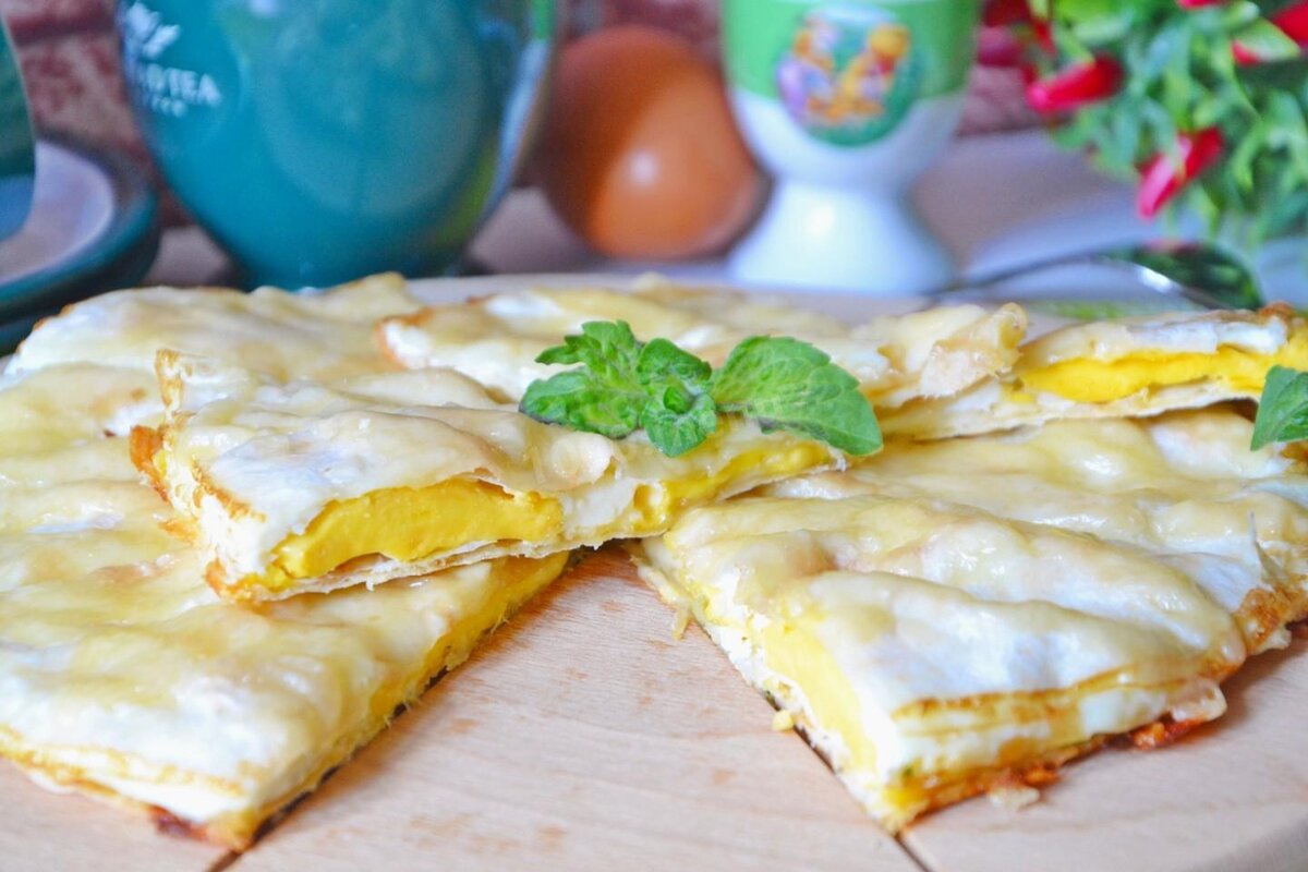 Ингредиенты: круглый лаваш, 4 шт вареная колбаса 150 грамм( можно заменить на куриную грудку); овощи ( помидор и лук) ; сметана 50 грамм; творог(мягкий) 50 грамм ; томатный соус ( у меня томатная паста и соус сацебели ) ; сыр 100 грамм. Каждый слой промазываем соусом (здесь томат, сметана, творог мягкий). И на каждый слой добавляем разные ингредиенты: колбаса, помидор, лук, сыр. Вариантов, чего еще можно добавить, море - мясо, огурцы маринованные, грибы и т.д... Запекать минут 30 при температуре 180 градусов. Приятного аппетита!!!