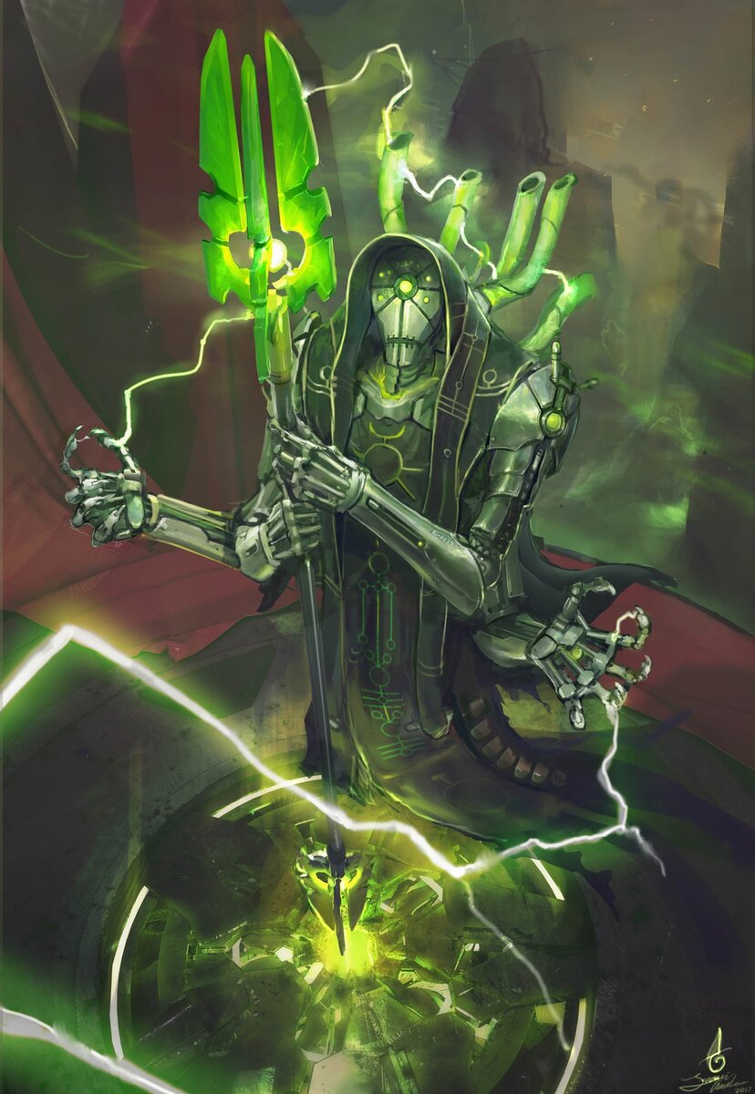 Загибайте пальцы(спойлер: одной руки вам не хватит): Некроны могут в телепортацию, манипуляции с материей на атомарном уровне, телекинез, перемотку времени, создание карманных вселенных, трансмутации и т.п. Непосвященному такой уровень взаимодействия с окружающим миром может показаться колдунством. Тупым детишкам невдомёк, что энергия варпа и Некронская наука - разные вещи.