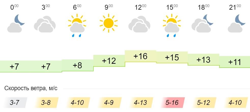 Поле обеда ожидается усиление ветра до 13-16 м/с. Небольшие осадки ожидаются в районе трех часов дня.