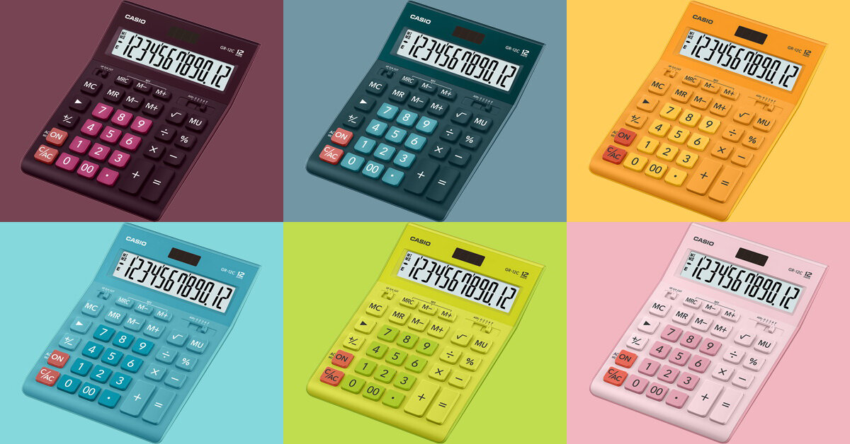 Цветные офисные настольные калькуляторы CASIO - тренд сезона. Выбор цветов настолько широк, кто подойдет под любой корпоративный стиль.