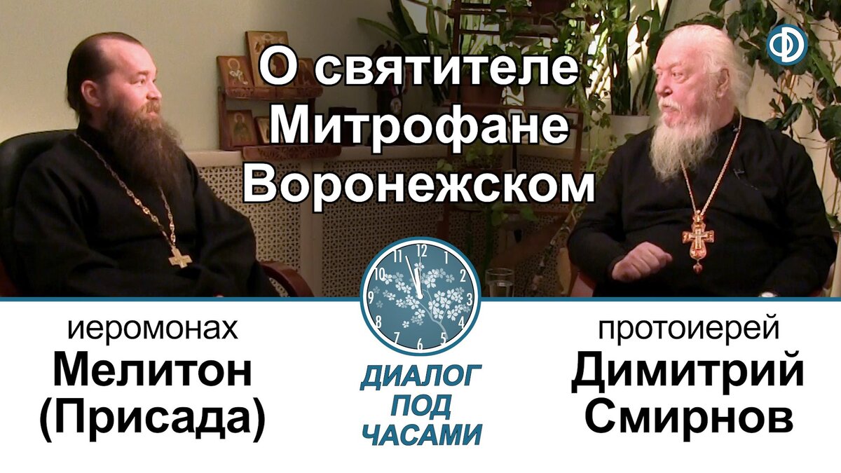Диалог под часами протоиерея Димитрия Смирнова c иеромонахом Мелитоном (Присадой), настоятелем храма Преподобного Сергия Радонежского в селе Долматовский, о святителе Митрофане Воронежском. Встреча инициирована группой почитателей святителя Митрофана, объединяющей приходы разных городов, в которых находятся храмы святителя. 21 ноября 2019 года.