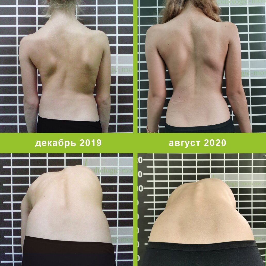 Идиопатический сколиоз дает сильное изменение внешнего вида: чем больше сколиоз, тем он заметнее. Плечи, лопатки, тазовые кости на разном уровне, расстояние от руки до тела справа и слева неодинаковое.