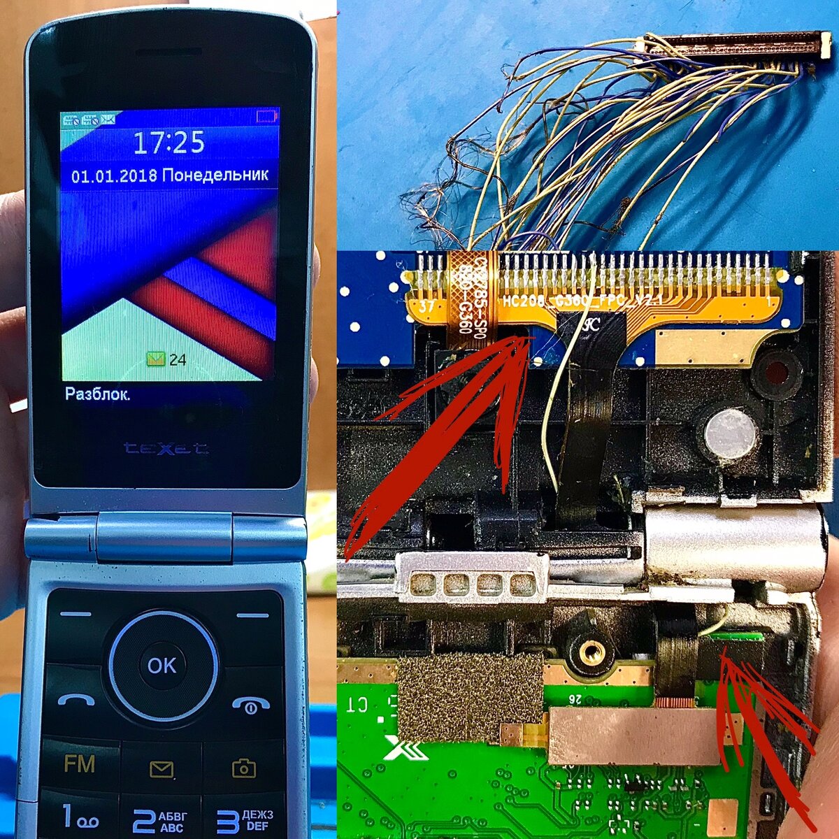 Всем доброго времени суток! Сегодня хотел бы поделиться с Вами одним простеньким ремонтом. На данном телефоне отсутствовала подсветка дисплея. Со слов клиента ; - Всё начиналось с того, что ранее экран то показывал, то переставал, звонки и смс проходили, а к тому же и назойливый будильник не давал постоянно покоя, особенно когда дисплей вовсе перестал давать картинку! Вообщем решил я его отремонтировать. Телефон у нас из бюджетных, комплектующих на них во всем интернете я найти не смог, ну конечно если мы не берем в расчёт китай ( AliExpress - какой нибудь ) , ибо с ними я не работаю, да и модель того не стоит, сроки, сумма, потом едь забери на почту, а там и вовсе придёт какой нибудь брак. Вообщем решил своими силами, либо получится либо нет) Основная проблема ни только данной модели, но и в целом телефонов формата книжка ( РАСКЛАДУШКА ) - это выход из строя шлейфа, что соединяет основную плату с вашей верхней частью, которая подвержена постоянным изгибам. В один прекрасный момент