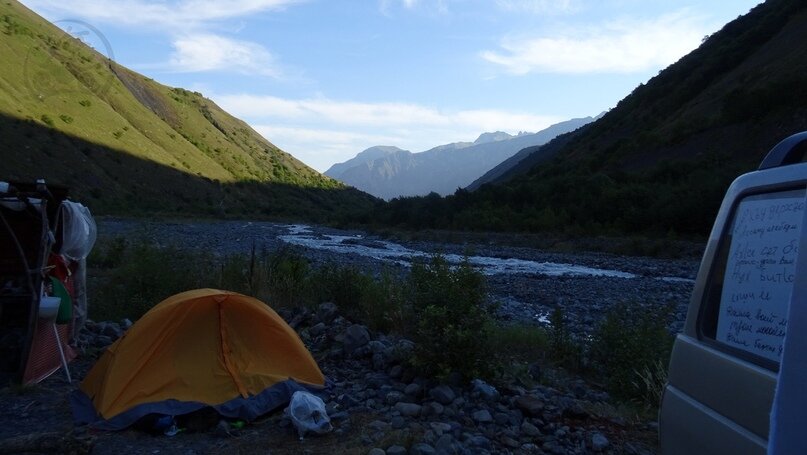 Спуск к машине прошел уже без происшествий, зато с новыми знакомствами. Местные ребята прибывшие, как и мы неспешно насладиться природой ущелья приглашают в свой лагерь.