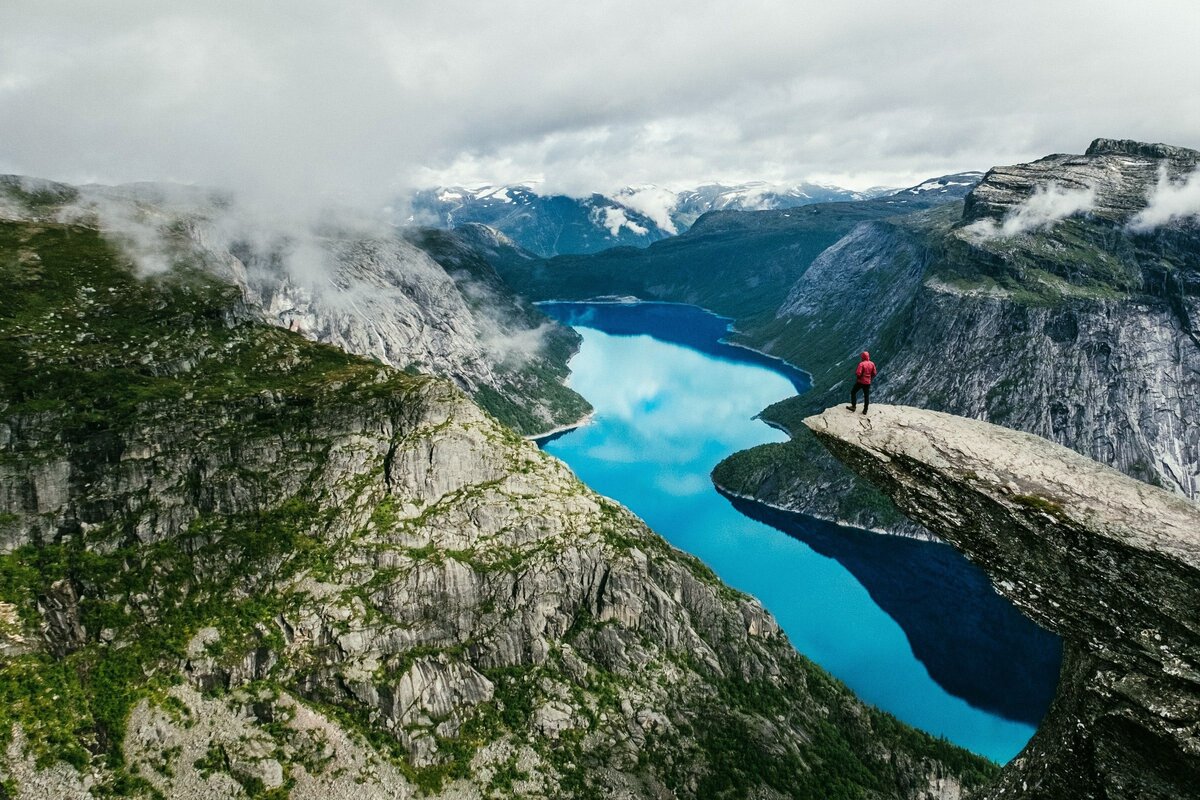Я много где побывала, много чего увидела, но есть на планете такое место, вызывающее восхищение и страх одновременно. Только от того, что начинаю рассказывать вам о нем, эмоции просто переполняют. Буквально год назад мне удалось побывать в удивительном месте и этим я очень горжусь. Несмотря на то, что пришлось преодолеть много сложностей, чтобы добраться сюда, место просто потрясающее, вызывает такие сильные эмоции, что сердце замирает. Ни одно фото или видео не сможет предать всю красоту Языка Тролля, который находится в Норвегии. Очень страшно, но невероятно красиво. Итак, Язык Тролля представляет собой огромный выступ в горах, который нависает над огромной пропастью. Если смотреть со стороны, я бы сказала, что гора высунула свой «язык». Дорога до этого места очень длительная и занимает приблизительно пять часов. Не могу сказать, что было очень сложно на всем пути. В высоту поднимались приблизительно 3-4 км, а уже потом просто шли около 7 км. Чтобы добраться до Языка, нужно приехать