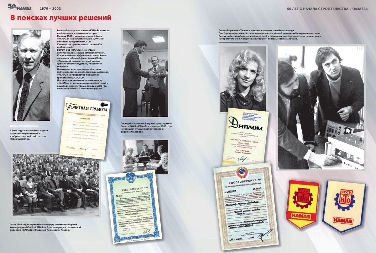 «КАМАЗ» неоднократно поощрялся грамотами ВДНХ СССР. Фактическая экономия, полученная на «КАМАЗе» от использования изобретений и рацпредложений, только за один 1988 год составила около 20 миллионов рублей.