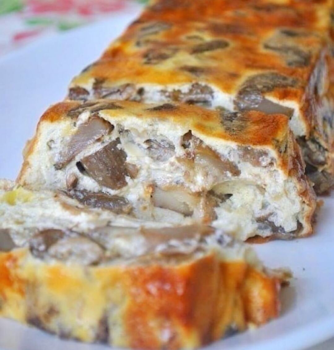 Грибы очистите, промойте, порежьте, посолите, поперчите, обжарьте в масле с луком (немного масла оставьте для смазывания формы). Добавьте 1/2 часть сметаны, закройте крышкой и тушите до готовности в течение 15 минут.