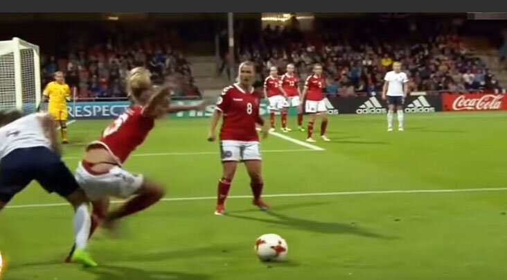 Девушка из Швеции совсем не понимала, куда следует бить. Такое впечатление, что заприметив мяч, она решила ударить по нему просто так, лишь бы летел подальше. Итог – автогол. Только после того, как мяч оказался в сетке, шведка сообразила, что натворила.