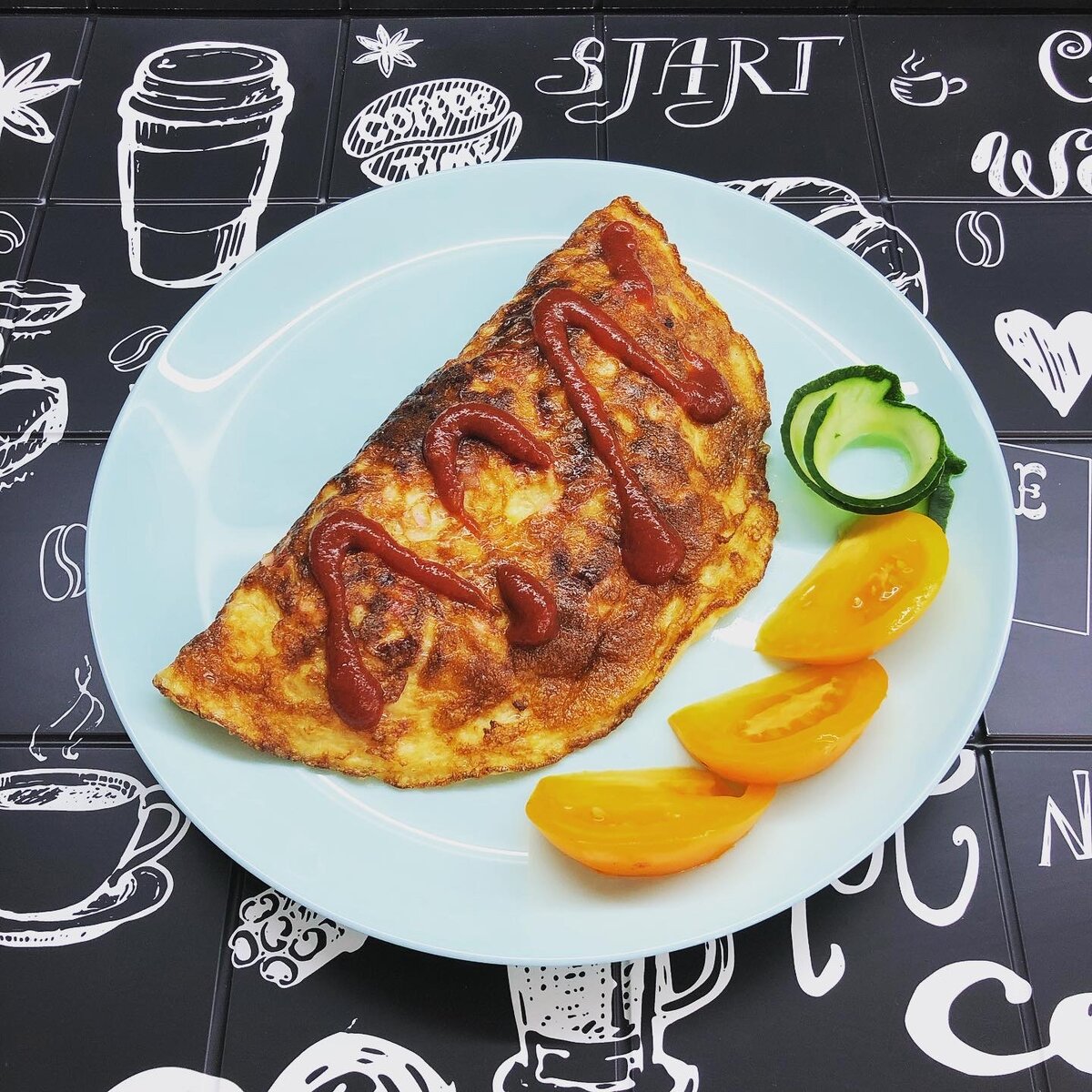 Сверху можно добавить кетчуп. Омлет получается очень нежным с тянущимся сыром. Идеально подойдёт для завтрака!