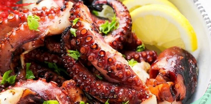 В отдельной миске приготовим соус: смешаем оливковое масло, лимонный сок и орегано. Выкладываем щупальца на тарелку, солим, перчим, поливаем соусом и посыпаем мелко нарезанной петрушкой. Блюдо готово. Приятного аппетита!