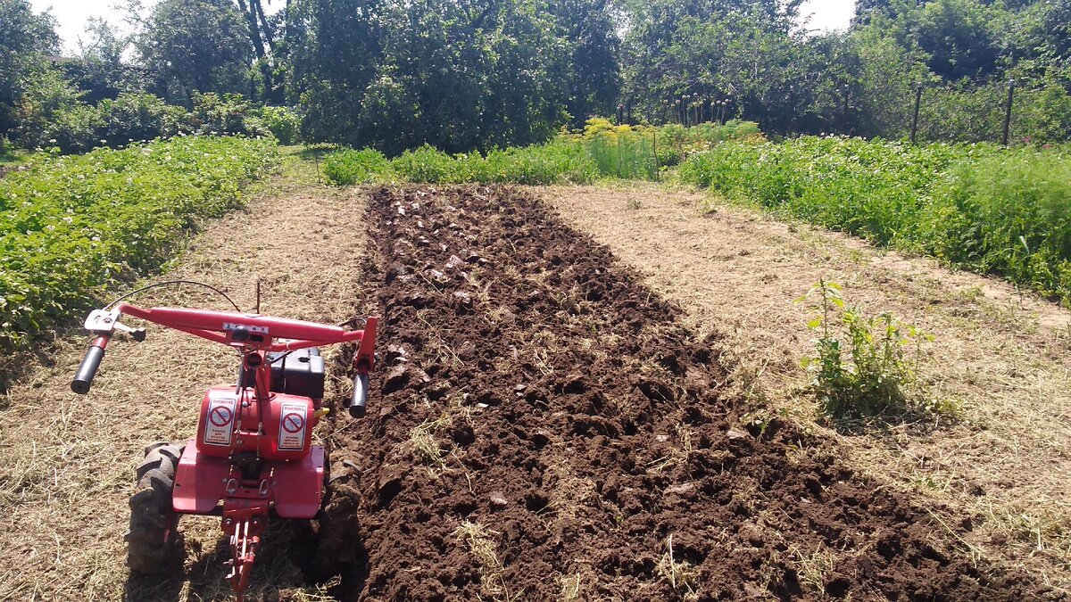 При нормальных настройках агрегатов вспашка происходит ровно, без прикладывания излишних усилий на руль мотоблока, не должно быть сильной пробуксовки. Глубина вспашки от нижней точки борозды до поверхности необработанной почвы должна быть примерно одинаковой.