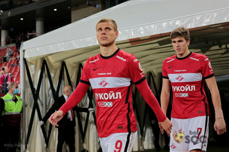 Родина» начала игру смело. Уже на 2-й минуте Никита Ерёменко заработал опасный штрафной. Сфоливший на левом полузащитнике Кутепов наверняка был удивлён тем фактом, что против него играет настолько быстрый и резкий оппонент. Номинальные хозяева едва не забили быстрый гол: Владислав Волков пробил головой чуть выше ворот. Однако удар центрального защитника остался единственным для «Родины» до перерыва. После этого игра шла на половине поля бело-голубых, в основном даже на последней трети поля. Красно-белые безраздельно владели мячом, а команда Дениса Лактионова держала глубокую оборону. До поры до времени номинальным хозяевам удавалось удерживать нули: игроки «Родины» перекрывали направление передач, сидели на ногах спартаковцев. Мяч не доходил до Соболева с Кокориным в удобных позициях, хотя однажды экс-зенитовец организовал момент для Георгия Джикии. Капитан активно подключался к атакам, чтобы создавать численное преимущество в розыгрыше. Кокорин получил пас, находясь в штрафной спиной