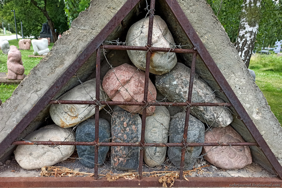 Этим летом я изучила Музеон вдоль и поперек. Когда приезжаешь погулять раз в год, многое остается незамеченным, но если гуляешь ежедневно, планомерно заглядывая во все уголки парка, изучаешь все более детально. Мне кажется, некоторые скульптуры я раньше не видела. Головы-камни известные, это часть композиции "Жертвы тоталитарного режима". Рядом памятник Сталину из розового гранита.