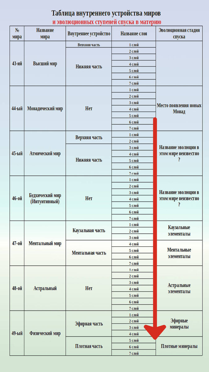 Сейчас мы рассматриваем период времени когда на планете Земля самым эволюционно развитым царством и существами соответственно являются астральные элементалы, обитающие в Астральном 48 — ом мире. К этому моменту времени астральные элементалы уже разделились на 2401 отдельную породу, с горизонтальной точки зрения (свойств породы), а так же на семь отдельных видов, с вертикальной точки зрения (плотности материи входящей в состав их тел). Седьмой вид астральных элементалов всех пород, т.е. те чьи тела состоят из самой плотной астральной материи уже находятся на границе Астрального 48 — го мира и Эфирной части Физического 49 — го мира. «Жажда получения новых более грубых ощущений», которая заложена эволюцией в само «естество» астральных элементалов, понуждает их встраивать в свои тела более плотную материю. Но более плотной материи Астрального мира уже нет, все её виды уже находятся в строении тел астральных элементалов седьмого вида.