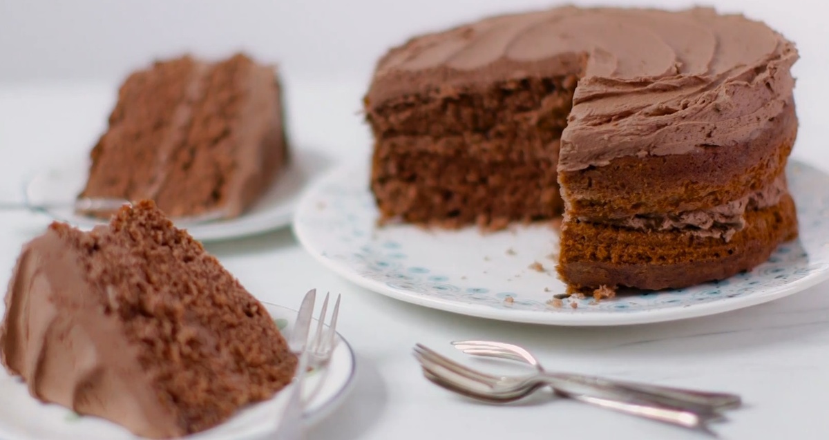 В большой миске взбейте 200 г золотистой сахарной пудры, 200 г размягчённого несолёного сливочного масла, 4 больших яйца, 200 г муки, 2 столовые ложки какао-порошка, 1 чайную ложку разрыхлителя, ½ чайной ложки ванильного экстракта, 2 столовые ложки молока и щепотку соли, взбивать до тех пор пока масса не побледнеет.