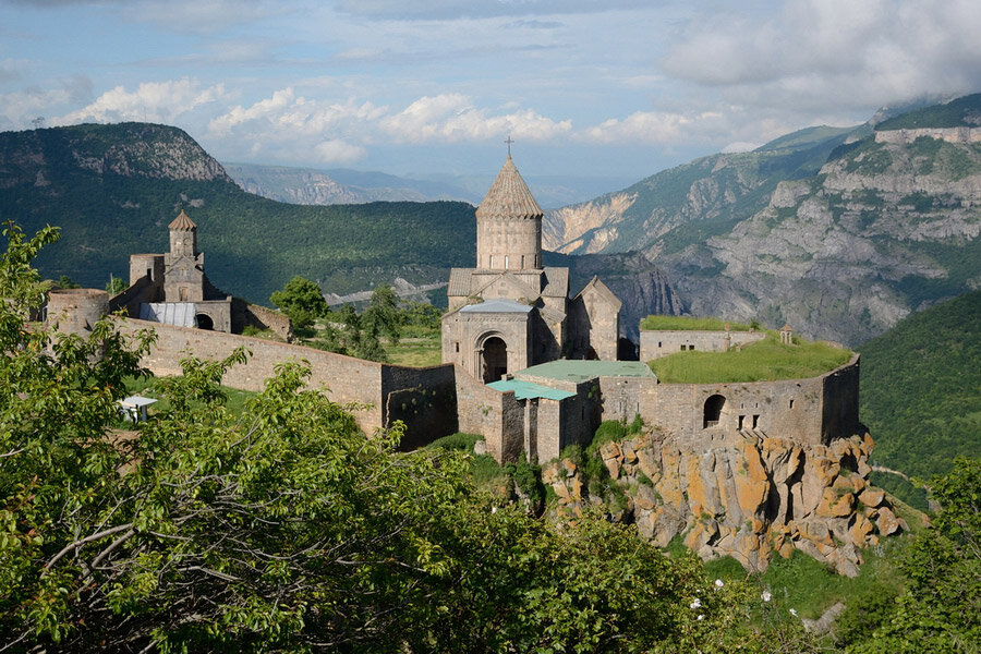 В 30 км от Гориса, в самом сердце Сюникского района Армении, располагается один из самых крупных храмовых комплексов страны — Татевский монастырь или попросту Татев. Летописи гласят, что в прежние века правый берег реки Воротан занимало языческое капище. С приходом христианства оно утратило былую значимость и в 9 веке н. э. уступило место храму с притворами. Строительство монастырского комплекса растянулось на сотни лет и завершилось лишь в 13 веке. До сих пор точно не установлено, кто и когда дал имя монастырю.