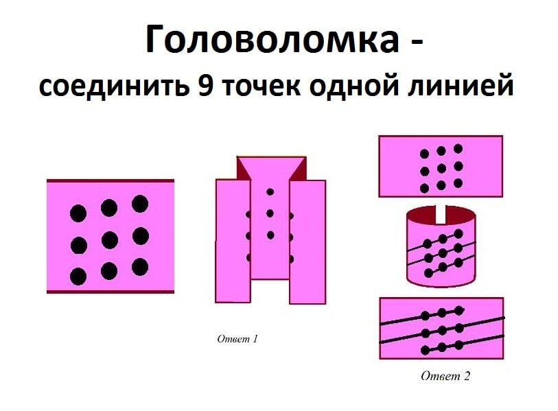 Можно проиллюстрировать переход в другую плоскость мышления на примере головоломки.