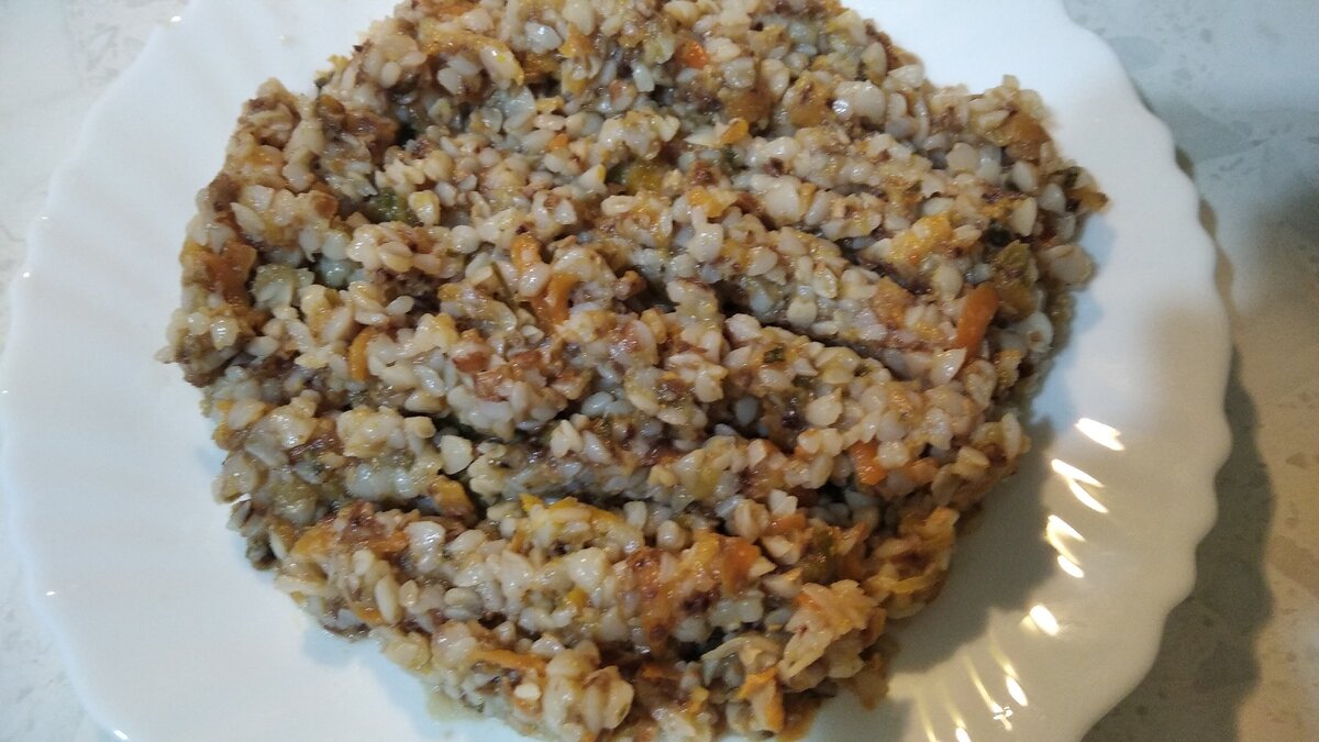 Затем добавим гречневую крупу стакан в мытом виде.
