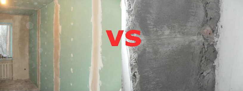 Делаем выбор Штукатурка и гипсокартон имеют общие черты. Рассмотрим, какие именно. Гипсокартон не зря называют сухой штукатуркой. Он способен выровнять стены без лишних трудностей. Оба вида отделочного материала изготавливаются из экологически чистых компонентов. Поэтому они безвредны. Если сравнить скорость проведения работ, то бесспорным лидером будет гипсокартон. При этом с ним можно работать уже при +5 градусах. Для штукатурки нужен более тёплый температурный режим. При сравнении сроков службы лидерство останется за штукатуркой. Небольшая оговорка: если процедура ее нанесения была проведена правильно. Для быстрого окончания ремонта лучше выбрать монтаж гипсокартона. Цена за кв. м при этом также будет ниже, что немаловажно. Предпочтение следует отдать гипсокартону, если надо скрыть инженерные коммуникации или большие изъяны в стенах. Дополнительное утепление возможно также при монтаже этого материала. Штукатурка предпочтительнее на даче, поскольку зимой там нет постоянного отопления. Маленькая комната, отделанная гипсокартоном, станет ещё меньше. Штукатурка спасёт площадь от уменьшения. И, конечно, для комнат с тяжёлыми предметами на стенах этот материал - беспроигрышный вариант.