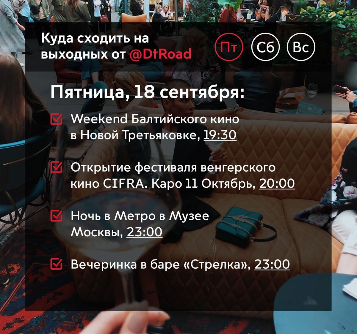 💙🌊Этот уикенд нас порадует если не погодой, то точно крутыми городскими ивентами. Смотрим странное кино, ездим на велосипедах, катаемся на сапсерфе, танцуем днем и ночью — в общем, самых-самых выходных🔥