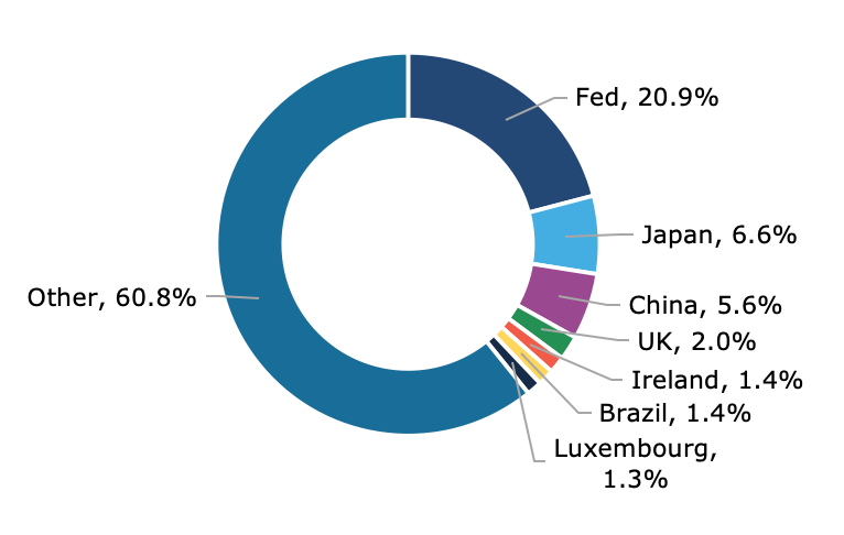 На приведенной ниже диаграмме показаны крупнейшие держатели долга США по состоянию на апрель 2020г.