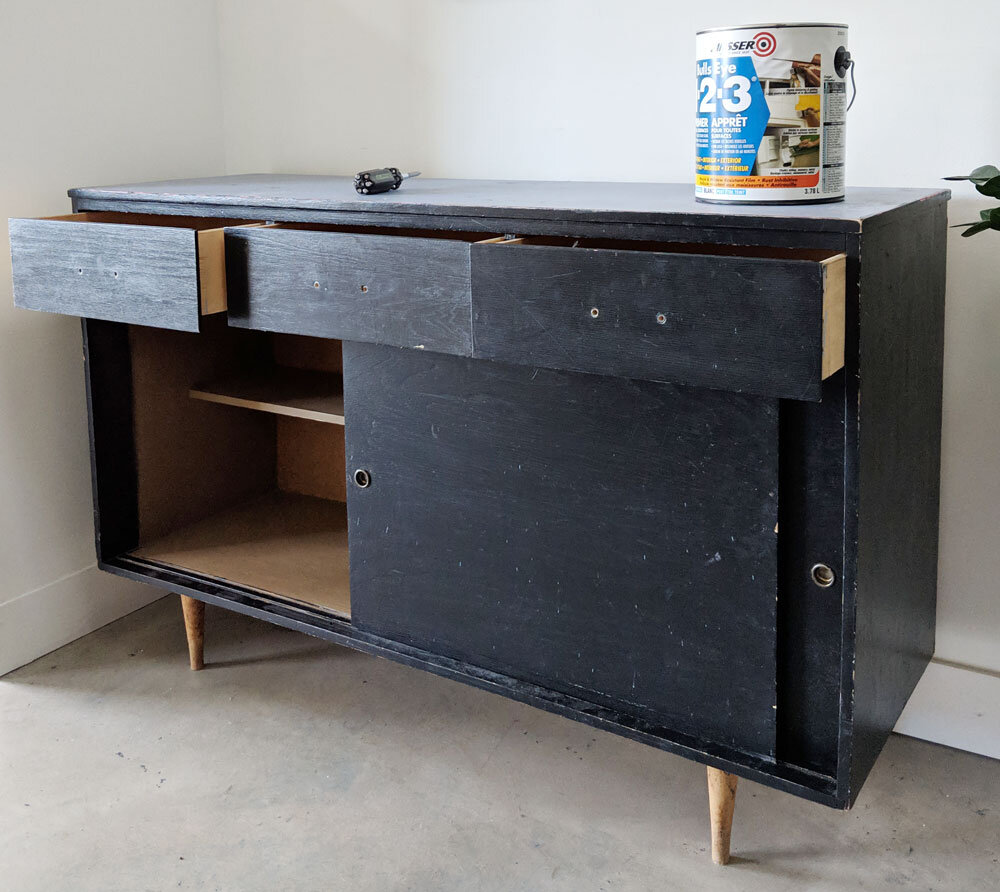 - очистить, отшлифовать и покрасить внутреннюю часть буфета, чтобы старые, грязные стенки впоследствии не пугали при открытии дверей.