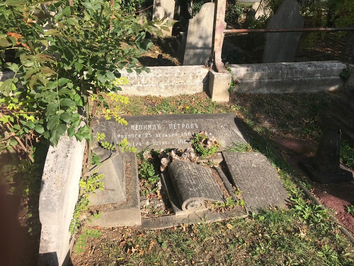 Эти две могилы я обнаружил в греческом некрополе кладбища - отдельном участке с внушительным монументами, колоннами и семейными мавзолеями. Леонид Петров вероятно был сыном богатых русских греков, увы, со слабым здоровьем или попавшим в несчастье. Найдя его могилу, я начал глядеть по сторонам, и приметил знакомые слова исполненные греческими буквами. Так я обнаружил Владимира из 'новороссийского Ростова' (так перевел мне Google Translate - ΡΟΣΤΟΒ ΝΙΕ ΡΩΣΣΙΑ). Фамилия Владимира 'ΝΙΚΟΛΑΟΥ' думаю что по-русски писалась бы 'Николаев', но на греческом она оставалась греческой 'Николау'/Nikolau.