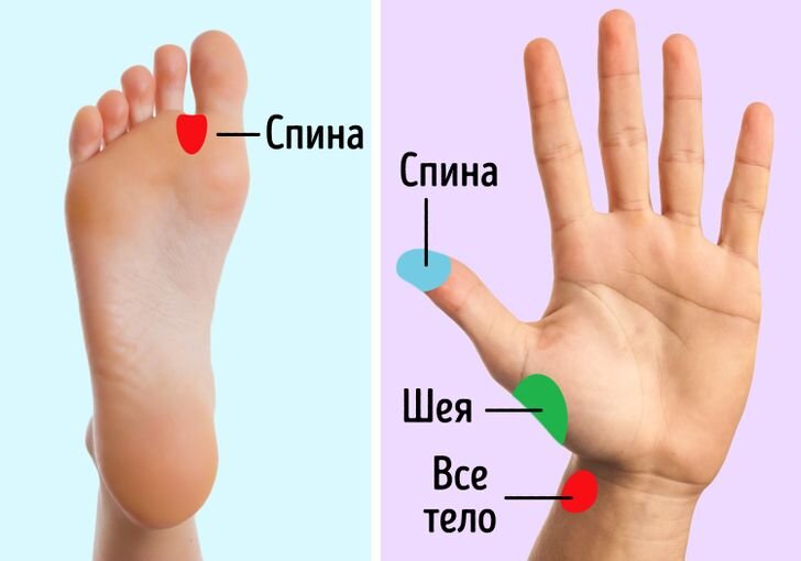 1. Расслабляющий точечный массаж от боли в плечах и шее Согласно практике и исследованиям, это весьма эффективный способ. Оказывается, акупрессура и рефлексология продемонстрировали обезболивающий эффект в 9 из 10 исследований. На теле человека находится множество акупунктурных точек, поэтому, прежде чем прибегнуть к этой практике, обязательно проконсультируйтесь со специалистом. Можно воздействовать на массажные точки, связанные со спиной. Существуют и точки для расслабления шеи и даже всего тела целиком. 1. Не торопитесь, выполняйте движения медленно. 2. Сядьте или лягте в удобной позе. 3. Расслабьтесь, дышите глубоко, закройте глаза. 4. Надавливайте на точки с усилием, выполняя небольшие вращательные движения или движения по направлению вверх-вниз.