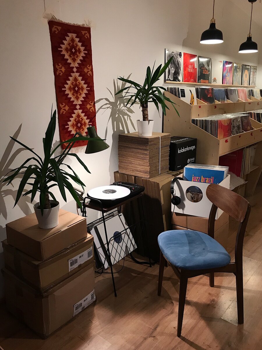 Он находится неподалеку от Казанского собора, стоит пройти буквально пару сотен метров и ты уже у подножья магазина. Ну как, не совсем, нужно будет открыть большую дверь в так называемый бизнес-центр, спуститься в его катакомбы и по указателям дойти до места назначения, получается даже мини-квест, но могу заверить вас, что проделанный путь будет определено стоить того. «Ритм», как и большинство местных магазинов, имеет свой фирменный стиль, начиная с ведения их социальных сетей и заканчивая интерьером магазина. Все аккуратно разложено по полочкам с прилегающими табличками для ориентации в жанрах, на фоне играет музыка, которую вы с большой вероятностью сможете тут же купить. В наличии множество знаковых релизов своего времени, но также не забыли и про андерграунд. На днях забрал у них два релиза, о которых вы можете прочитать в нашем «чердаке» — минималистичный инструментальный хип-хоп Ivan Ave на его последнем альбоме «Double Goodbyes» и искренний Swarvy, выпустивший летом «SUNNY DAYS BLUE». Найти их было бы крайне сложно без ребят из «Ритма», которые, к слову, показали мне несколько классных релизов текущего года. Среди их рекомендаций отмечу альбом «Full Circle» хип-хоп трио Jungle Brown и инструментальный релиз немцев Session Victim под названием «Needledrop». Также отмечу приятный бонус этого магазина: если вы, как и я, любитель задержаться на подольше в магазине винила, то вам всегда будет предложен напиток на выбор. Камбуча, чай и крафтовая кола из Берлина — все это стоит в уголочке с различными семидюймовками, в основном представлены диско, фанк, джаз и поп 80-х.