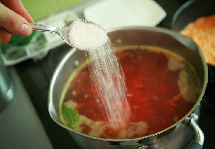 Не спешите снимать суп с огня. На финальных стадиях приготовления добавьте в первое блюдо свежевыжатый овощной сок. Это поможет усилить вкус и обогатить ваше блюдо витаминами, минералами и другими полезными веществами. Для этой цели отлично подойдет капустный, морковный или томатный сок.