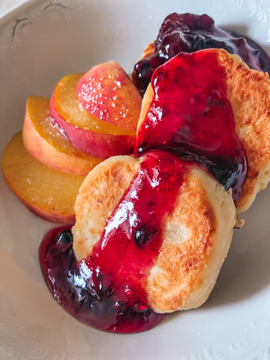 Я лично очень люблю сырники на завтрак и подаю их с фруктами и ягодным джемом. Оооочень вкусно!