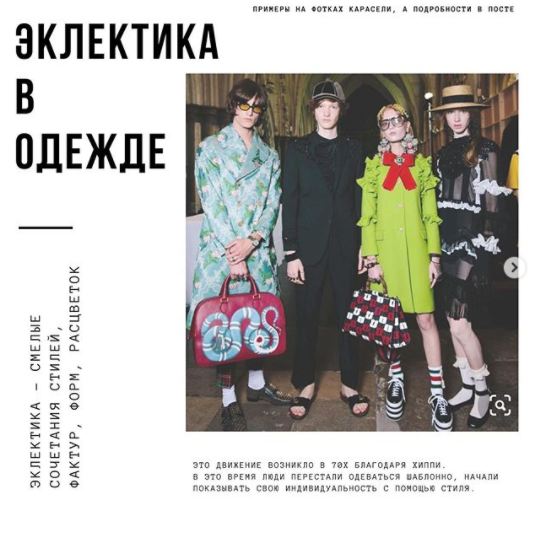 Эклектика кажется очень простой, но в реале - одно из самых сложных направлений, существует риск перестараться и выглядеть эпотажно-смешным🙈