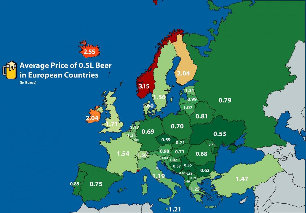 Пиво — один самых популярных напитков планеты, а в Европе к нему относятся особенно трепетно: считается, что именно здесь пьют больше всего в пенного мире. Чемпионы в этом деле — жители Великобритании, которые выпивают в среднем по 150 литров пива на человека в год. С небольшим отрывом следом идут Бельгия и Чехия, на каждую из которых приходится в среднем по 143 литра пива на человека, а затем