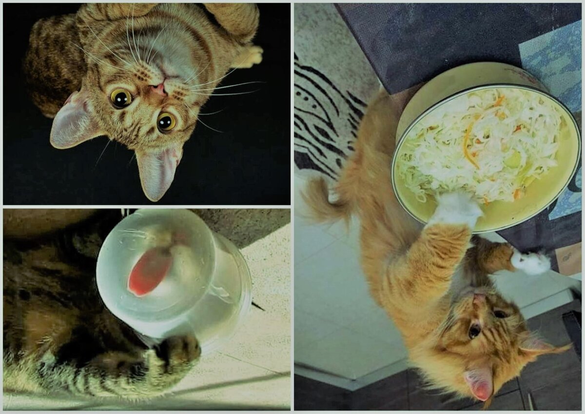 Историю эту рассказала мне бабушка. Жили у нее в своей время кот с кошкой, совсем ленивые и разбалованные. Невзирая на возможность, наслаждаясь деревенской жизнью, охотиться за мышками и птичками, они этого никогда не делали, потому как знали, что их всегда накормят не чем-попало, а мясом куриным. Правда, были у них все же свои причуды… Как-то бабушка решила вынести ведро очистков на компост, взяла его, вышла во двор, смотрит – а к ней соседка пришла. Стали они, заболтались и тут внезапно у бабушки спрашивают: — А вы чем котов кормите? Ну, она честно отвечает: — Мясом, вся морозилка им заполнена. — А мне кажется вы их голодом морите. Бабушка поворачивается в сторону ведра и видит, рядом кошка грызет капустную кочерыжку, а кот лакомится картофельной шкуркой. Такая «картина маслом» хозяйку балованных мурлык впечатлила.