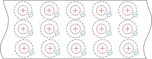 К проводникам относятся все металлы. У них внешние электроны связаны с ядром очень слабо и почти каждый атом превратился в положительный ион, выпустил в межатомное пространство один или даже несколько электронов. В металлах так много свободных электронов, что по отношению к ним применяют выражение «электронный газ» или «электронная пыль».