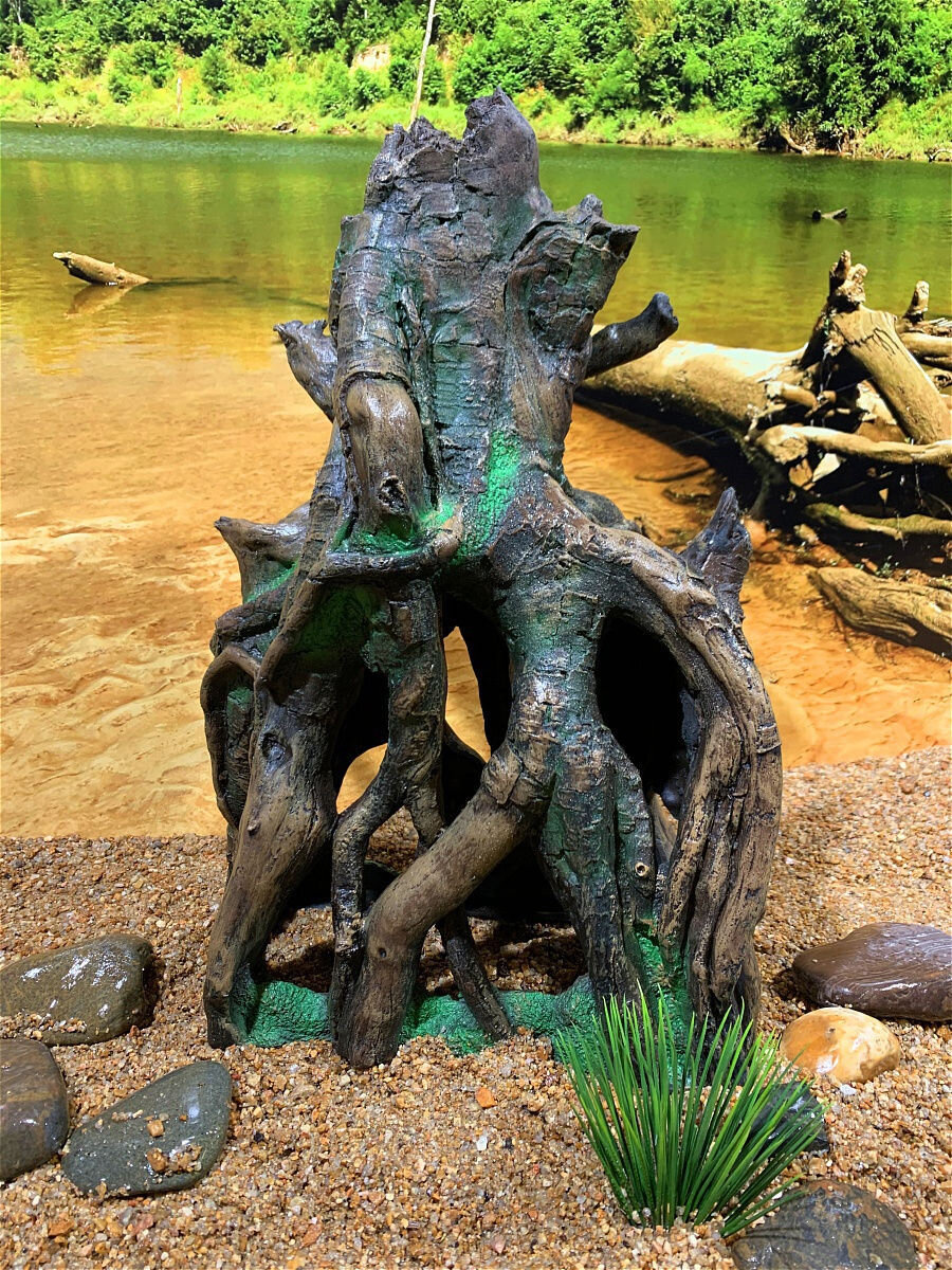 Лучший способ подготовки это замачивать корягу в воде до тех пор, пока она не начнет тонуть. Вначале можно придавить дерево сверху, или привязать груз, чтобы оно тонуло. Воду нужно регулярно сливать и доливать новую, поэтому часто для этих целей используется сливной бачок – частые смены воды обеспечены.