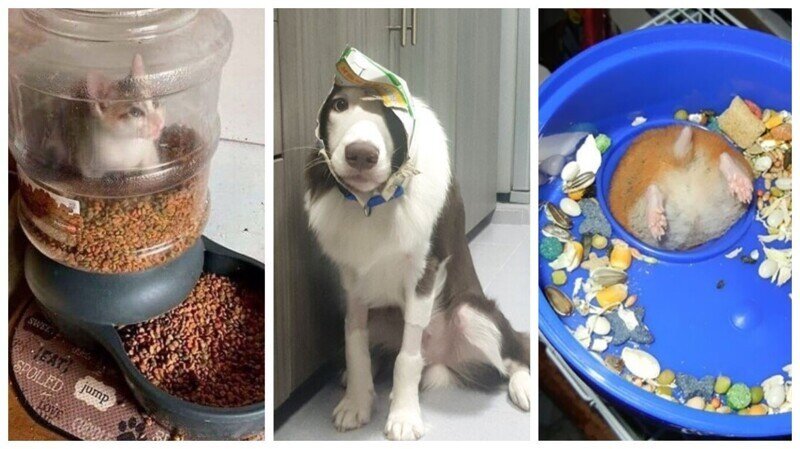 Тот у кого есть домашние питомцы, знает: они не всегда могут соизмерить свой голод и размер своего желудка. Им хочется все больше и больше... А жадность, как известно, до добра не доведёт. В этой подборке - животные, которые застряли в кормушках или других предметах, пытаясь добыть еду.