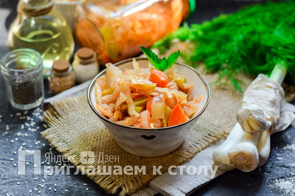 Этот ароматный витаминный салат ассорти великолепно разнообразит зимнее меню и будет отличным гарниром к мясным и рыбным блюдам, отварному и жареному картофелю, кашам, омлетам. Честно говоря, он идет на ура и летом. Обычно я не закатывают весь приготовленный салат, а оставляю немного на ужин.