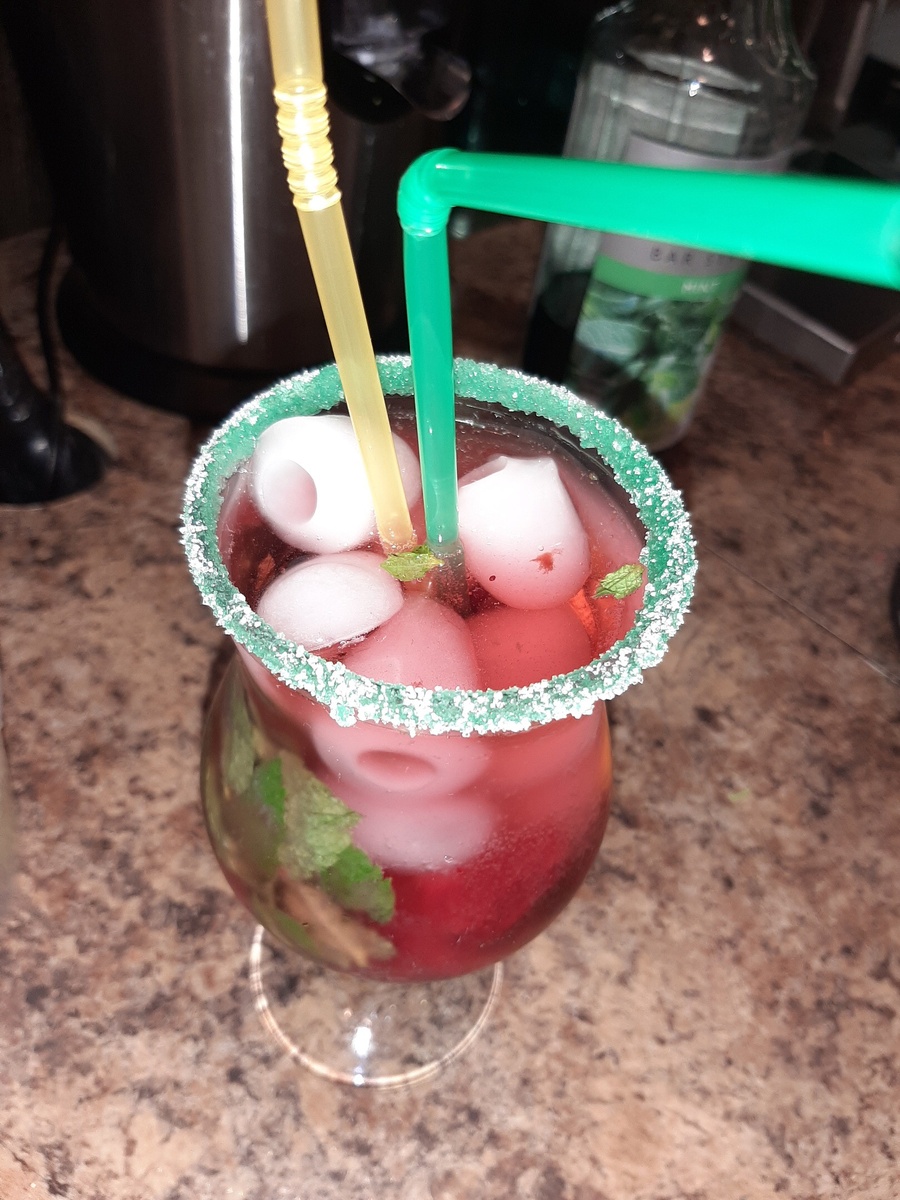 Нам понадобится, клубника, мята, клубничный сироп, лёд, лимон Для начала, украсим стакан с помощью сахара и сиропа Добавляем мяту... Затем клубнику порезанную слайсом лимон порезанный слайсом 15 мл сиропа ( клубничный) Подаём со льдом