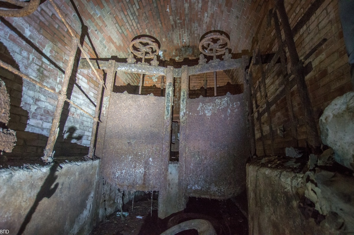 Наше время. Подземные помещения, камеры, построенные еще в 1898 году до сих пор сохранились под Москвой, хоть большинство из них уже давно не используется. Данное помещение было построено недалеко от перехода дюкера под одной из Московских рек для очистки, перекрытия и визуального наблюдения за состоянием системы. Две шиберные заслонки призваны перекрывать трубы самотечной канализации